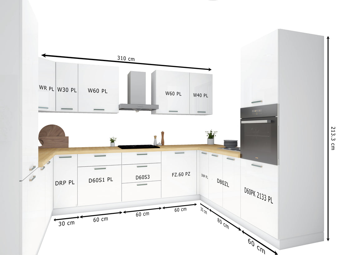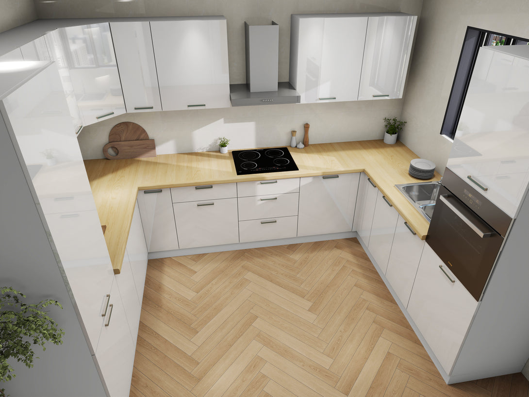 Küchenmöbel-Set VITA 770 cm / Vita U-Design – Weiß / Hochglanz