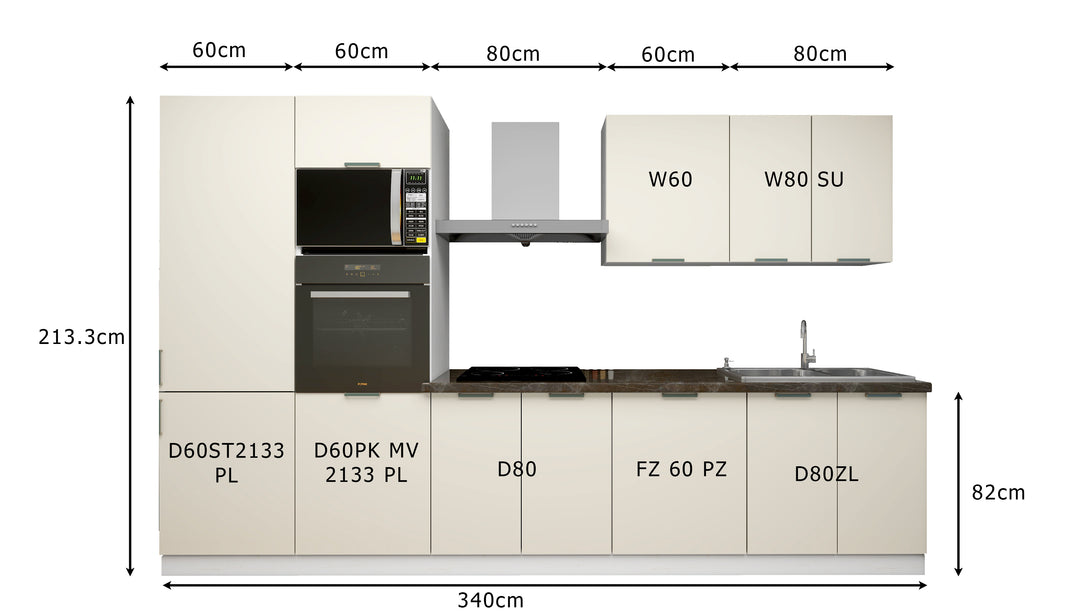 | 2 | D60PKMV P/L – Mikrowellenumbauschrank | 60 x 213,3 x 57 cm | 1 |