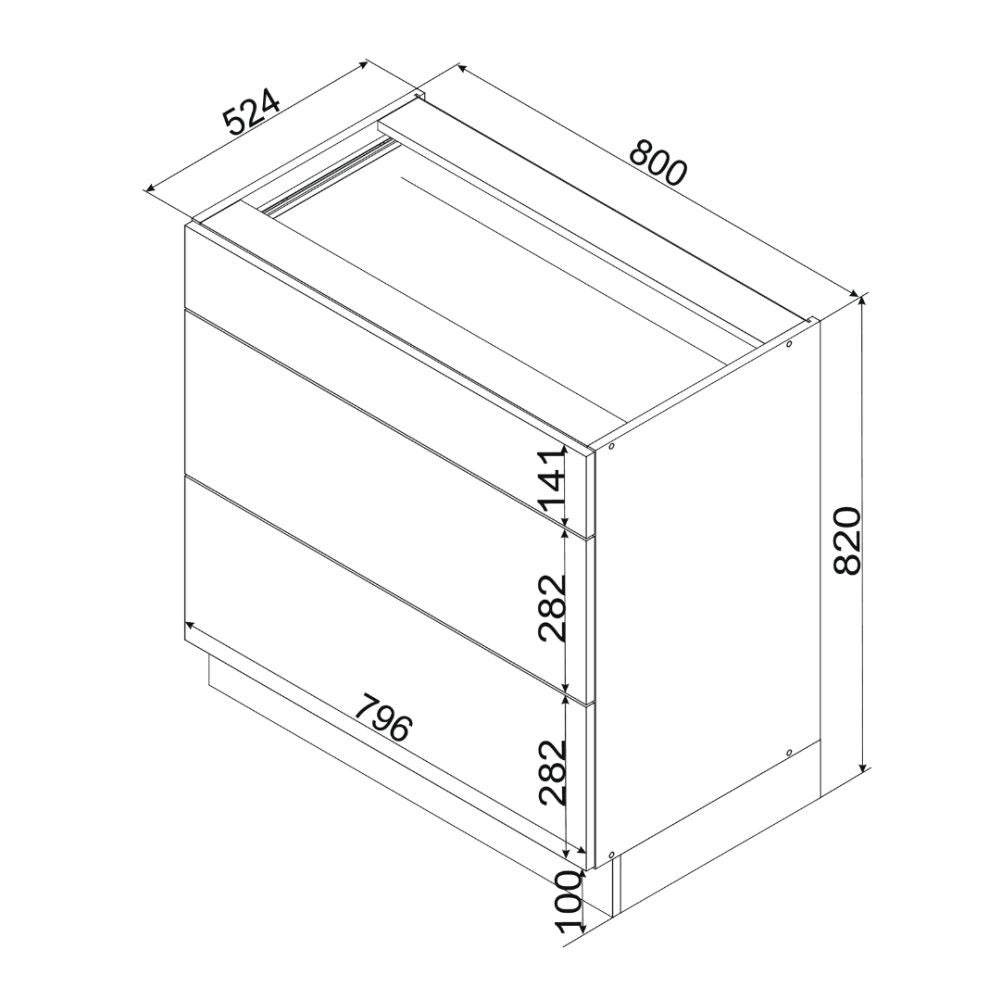 Unterschrank D80S3 ( S1600/15) - BONO - 3 Schubladen für effiziente Organisation